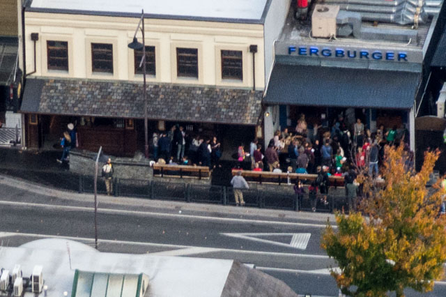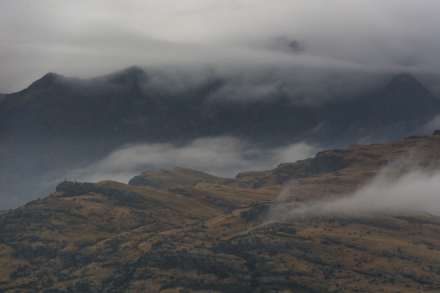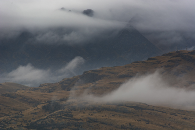 Our driver/leader spent a lot of the journey back to Queenstown dodging suicidal possums and rabbits on the road. Possums were introduced here from Australia and have thrived. They’re now officially a pest – Kiwi policy is to squash them at every opportunity; we’d heard rumours of bars giving you a beer if you’d got one. A hawk was feeding on some fresh road-kill and only just got out of the way of the van in time.