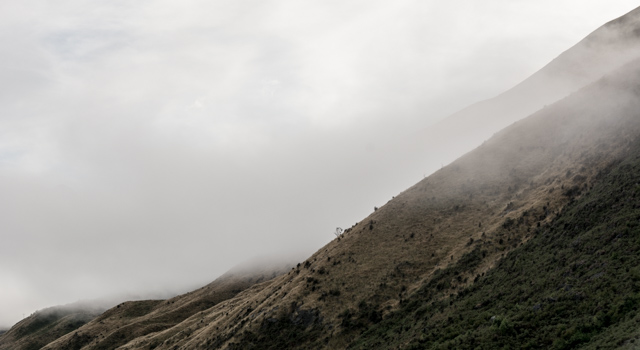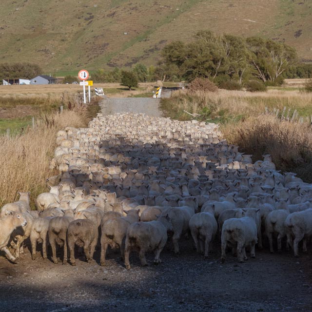 We arrived at the church about 6:30am; there was already a crowd gathered so I walked along the lake looking for some different views. There was a lot of mist coming off one of the corners of the lake, which looked like it might catch the first sun. The sky is very clear in New Zealand so almost as soon as the sun’s over the horizon, the best light’s gone. We drove back to Twizel and straight to Poppies for breakfast. I met Florence appearing from the mist having photographed some large machinery left over from building the dams in the area. I had scrambled eggs and a flat white, and a second flat white for good measure.
