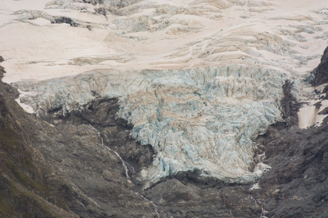 After breakfast, we drove down the far side of the lake towards Mount Cook, the tallest mountain in Australasia. Edmund Hilary and his team climbed Mount Cook in 1948 as part of their preparation for their attempt on Everest. Mount Cook village is the starting point for a number of mountain walks – a two-day trek goes over a pass and down to the west coast. We were doing a shorter walk up the Hooker Valley to a glacial lake. The path has a gentle incline up the valley but we were walking into a strong gusty wind, which slowed us down. There are three suspension bridges on the route, these bounce as people walk across them and swing in the wind too so it’s quite a struggle to get over them. On the left hand side of the valley, snowy peaks tower over us, precarious glaciers cling onto the sides. At the end of the walk, there’s a large glacial lake, which is a milky grey colour. We were on a tight time-table as usual so we only had 10 minutes to admire the view then we had to return. The sky was clearing so the peaks above us were now in the sun.