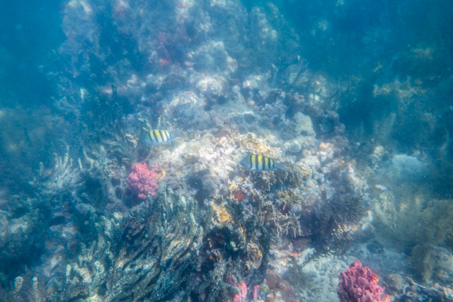 Back to the hotel, we decided to carry on with our watery afternoon and went for quick snorkel off the beach. There were no sharks and rays to be seen but still a lot of many-coloured fish to entertain us.