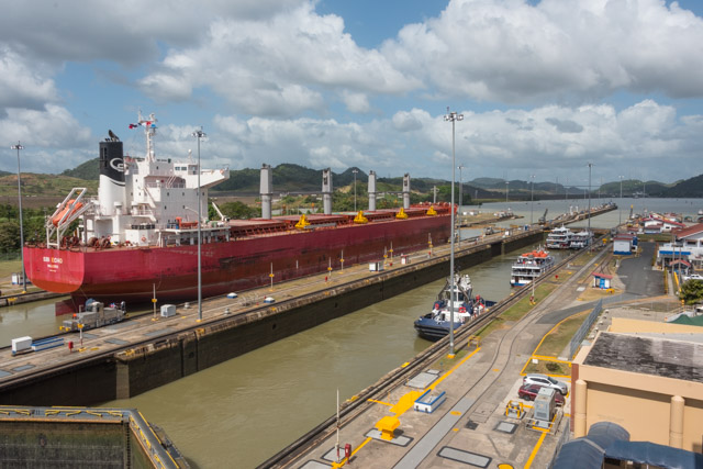 Today is all about the canal – four of us set off in a taxi at 9:30 to go to the visitors centre on the edge of the city. It’s about 15 minutes drive from the hotel. The centre overlooks Miraflores Lock, the first lock that take ships up from sea level. The majority of the canal is about 25m above sea level because it was created by flooding a valley to create a lake which forms the northern half of the route, this had to be higher to make it big enough and deep enough.