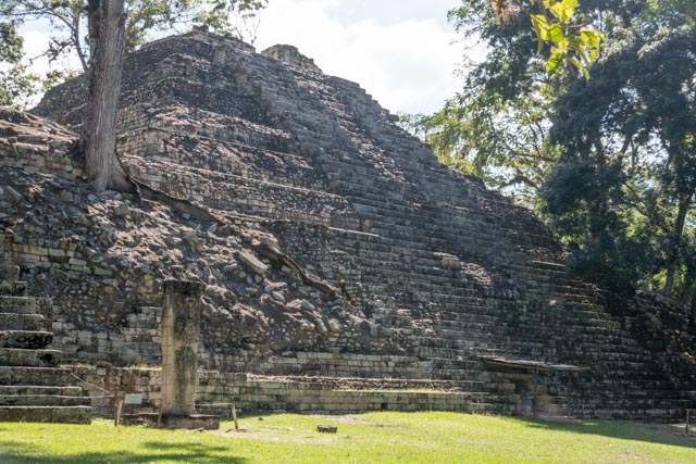 We boarded a tuk tuk for the ten minute journey to the ruins. One of the most important of all Maya civilisations lived, prospered, then mysteriously crumbled around the Copán archaeological site. At its peak, the site covered 24 square kilometers. The layout feels like a modern town, with the royal quarters on one side and secondary temples just off the main plaza. There are remarkable sculptures and hieroglyphics, including the 63-step hieroglyphic stairway. We heard more about Yax Kuk Mo, who came from Tikal and whose dynasty lasted sixteen years.