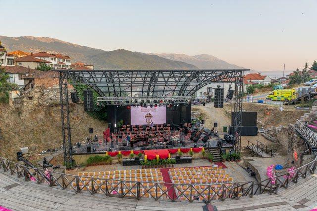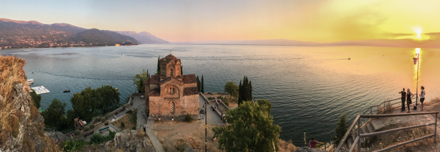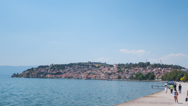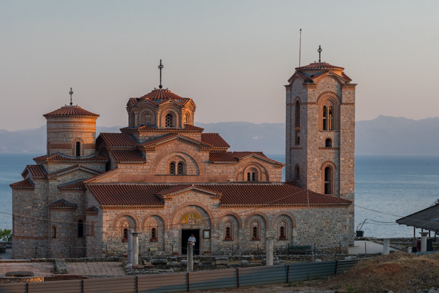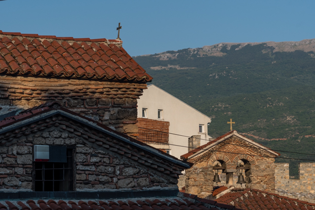 We had a quick stop to shower and change before heading out for the evening. We walked into the Old Town again, the history of the town is everywhere. The amphitheatre constructed by the Romans is currently being used as the main venue for the Ohrid festival. I visited the church of Saint Sofia, this large church was constructed almost 1100 years ago. Inside it has three aisles with columns in-between, much more open than the layouts at the monasteries we’ve been to.