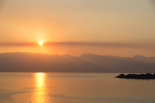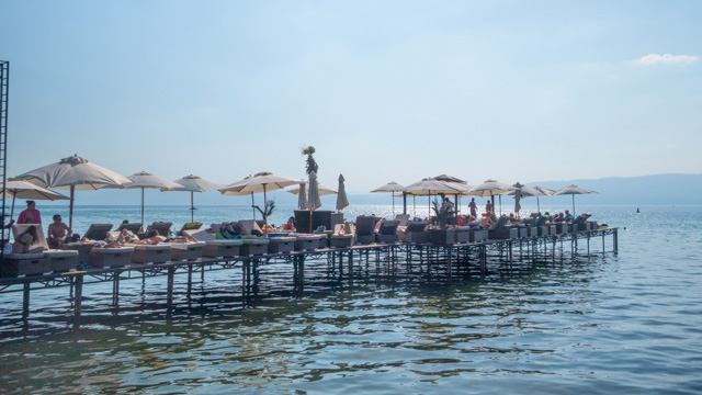 We had one more swimming stop on the way back to Ohrid. The water was cooler there but the sun was warmer so it was still very refreshing. We were about a mile from the lakeshore; the sound of music from a hotel was loud even there.