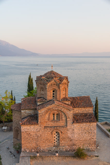 We’d arranged to meet a couple of our travelling companions in a bar overlooking the lake for a pre-dinner drink, this quickly turned into three drinks. Florence and I had dinner on our own tonight, we found a nice place right by the water, and we were lucky to get a table with a view of St Jovan Kaneo church. Very nice food a Macedonian Pinot Noir to wash it down.