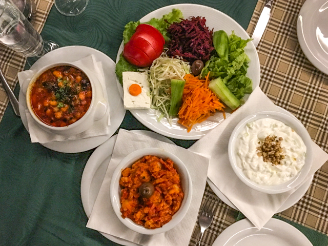 After the Monastery we had lunch in a nearby restaurant – even the touristy places here are good quality and good value. We had a few salads and shared a spinach and feta pie.