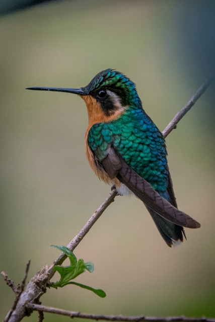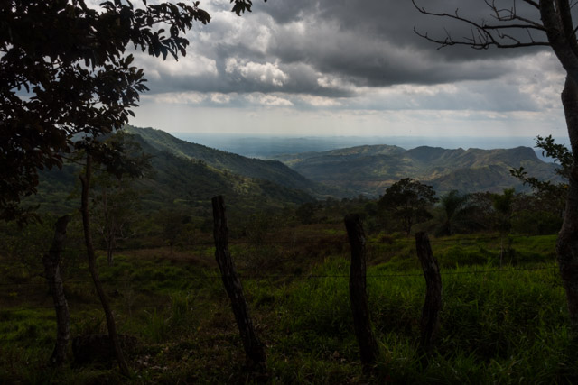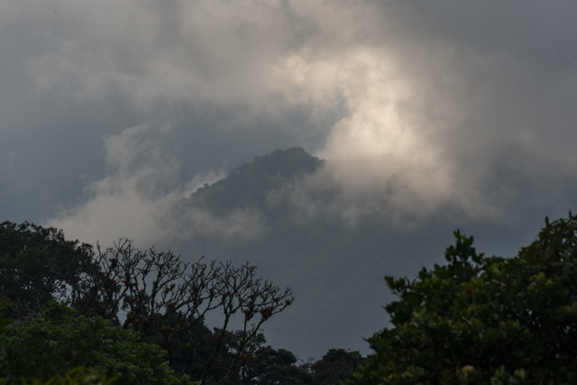 Sitting on our patio, we aimed to write our diaries but realised the futility of our task when the hummingbird came back to feed on the flowers near us. Up in a tree, we spotted a medium sized red bird – so bright. And then, he came and stood on a fence right next to us. And then further into the forest, one of the male quetzals. Too far to take any decent shots but clear enough that we could see the blue feathers at the back and the tail.
