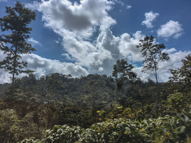 At 8:30am, we picked up our guide Octavio who took us over a hanging bridge to the hotel’s coffee plantations. The plantation is unlike any other we’ve ever seen. There are no rows of coffee plants here, it seems that they grow haphazardly, few and far between. We learned about pollination, how one coffee plant differs from another and how the soil and weather conditions also make a difference. Next, we tasted seven coffees from the farm; one by one starting from the light roast going up in strengths, two speciality ones and a blend. We smelled it three ways: dry straight from the grinder; brewed with the foam on top and then remove the foam and taste the coffee. At the first slurps, we got bitterness but trying them a second and third time, we were able to get a few more flavours – blueberry and honey for example. Interesting fact: the light roast contains the most caffeine, as roasting removes it.