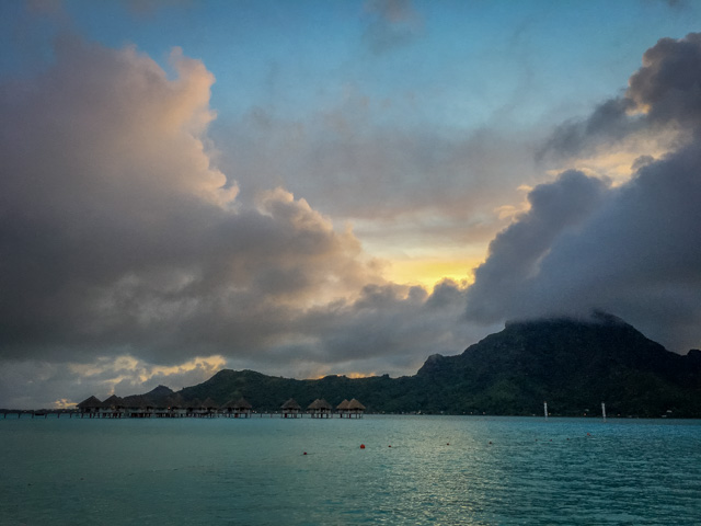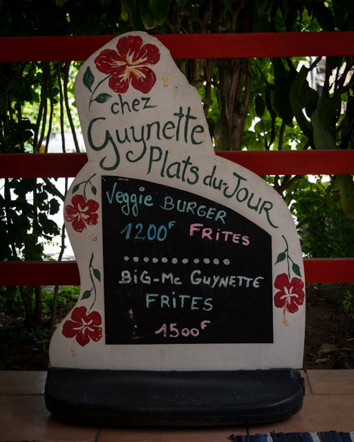 So we had it all sorted. We had lunch and breakfast for tomorrow. We’d planned to have dinner at the informal restaurant by the ocean to treat ourselves – our last night in French Polynesia. They have three very tasty vegetarian options.