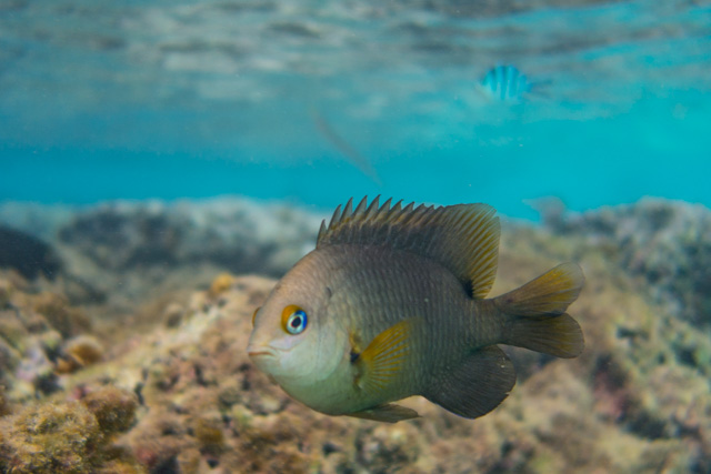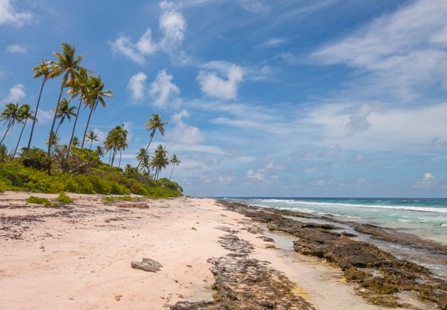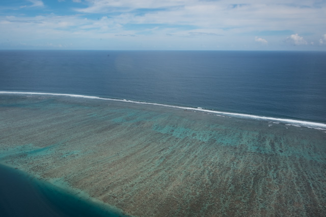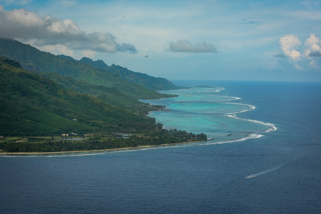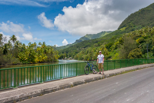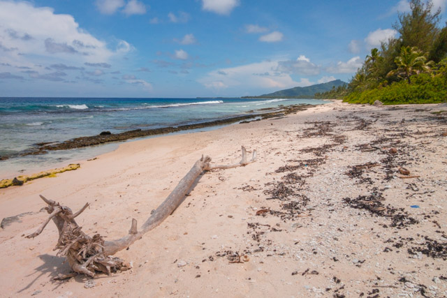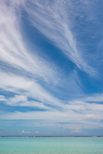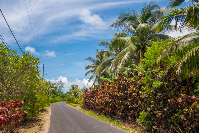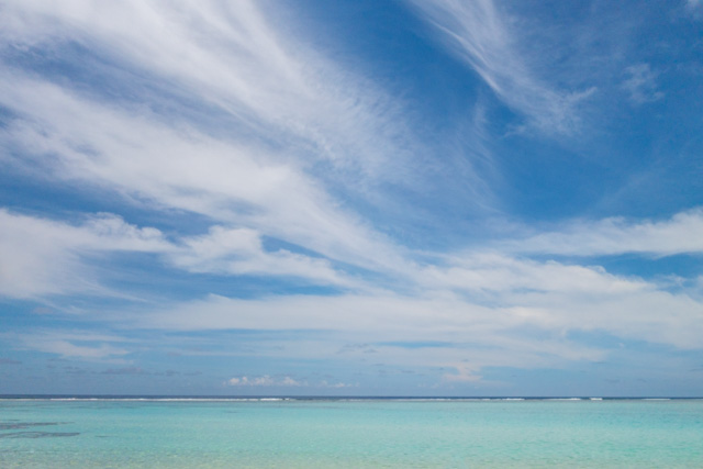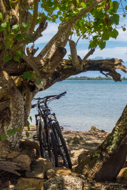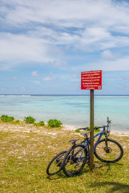 On the way back, we took a different road and came across another Marae. The road was more off-piste (read bumpy and full of potholes). One of the benefits was that there was some shade. And the houses on both sides of the track were definitely lived in by locals – all of them offering a friendly hello as we cycled past. Just across from the archeological site, we checked out the ocean. The colours were out of this world (it’s like living in a Velvia world this island!), and there was no one there, well… only one other person.