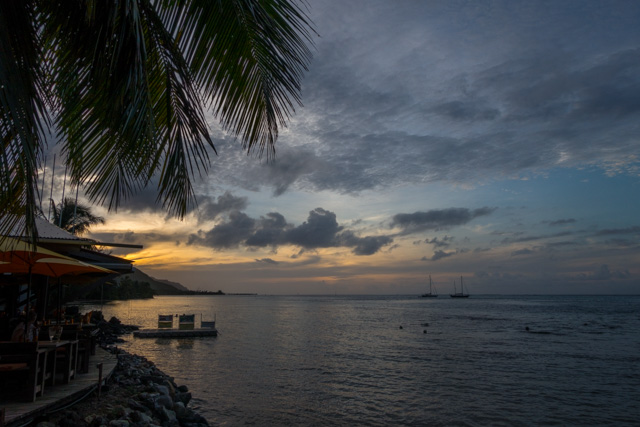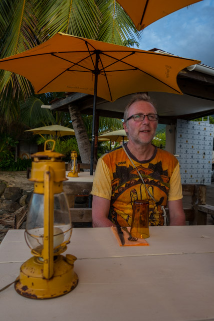 We elected to spend some time on our terrace. The space is private, with lovely chairs and we have a couple of loungers too. Andy came back from the bar with two pints of Hinano Tahiti, and the beers were just what we needed. He’d also sorted the internet access (you have to pay for it here, and he got us twenty four hours).