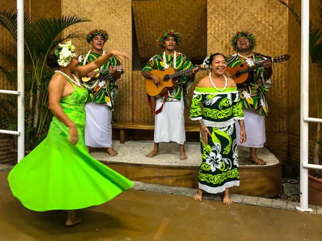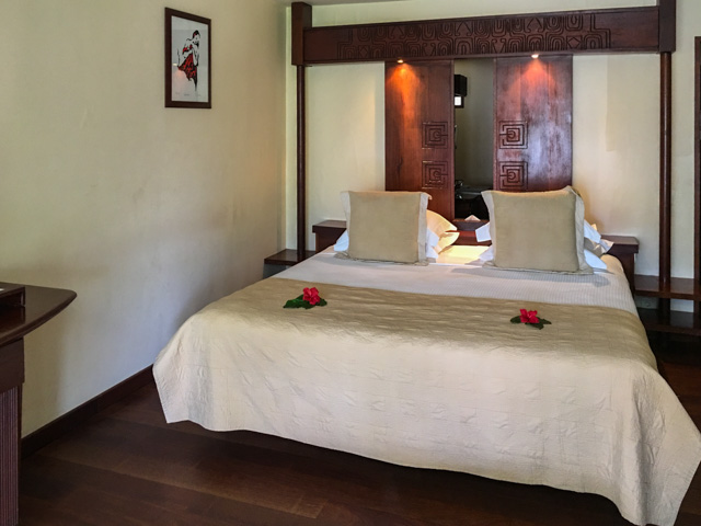 On our way to dinner, we went to the hotel museum. It’s very small, and sits opposite reception. It tells the story of the people of French Polynesia and how they went off to explore new places and eventually settled in Hawaii and New Zealand. It also tells about the archeological finds around the hotel. The site is rich in history – we have two marae nearby and these settlements were the first ones on Huahine.