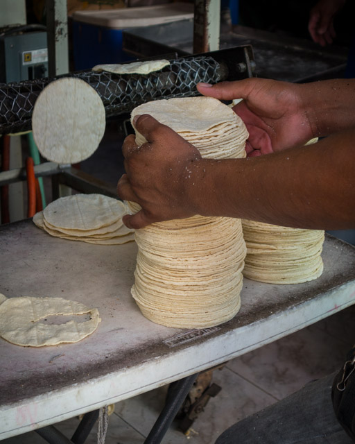 Leaving San Juan Chamula behind us, we travelled to Zinacantán (‘lands of bats’), and yes, the church there reveres bats. The bat is a symbol of the underworld where the pre-hispanic cultures believe the dead reside. The church is traditional at first sight but there are animal figures dotted around and the details in the architecture are picked out in black, a throwback to the bat. The area is famous for growing flowers and women weave flowers on their skirts. We made a stop at a local indigenous family’s house where we ate tortillas with cheese, omelette and olives. The tortillas were made fresh for us, and were delicious.