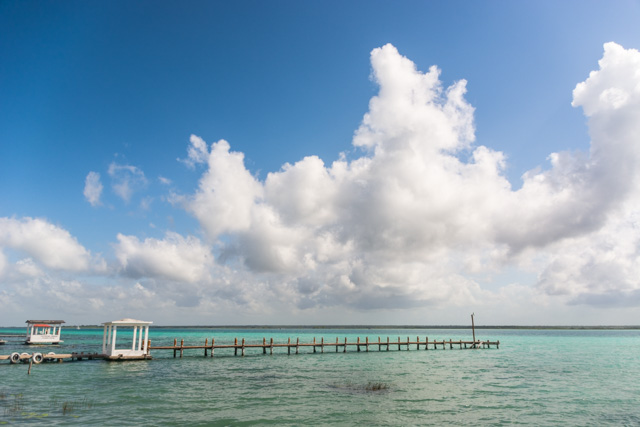 We drove to Bacalar, about 2.5 hours away from Tulum, where we had breakfast and where I dipped my toes into the Laguna Azul – so named because you can see up to seven shades of blue; we saw four.
