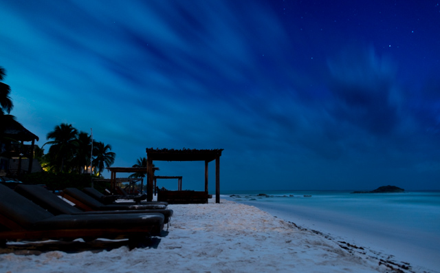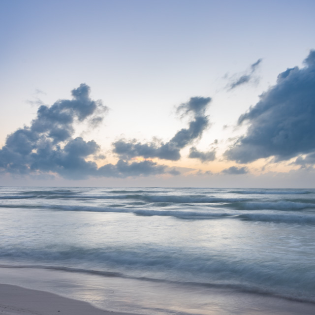 The alarm went off at 6am today, a full two hours before our scheduled departure. We had the beach to ourselves, and the sunrise was beautiful. Slowly going from moon light to sunshine; all in very delicate colours.